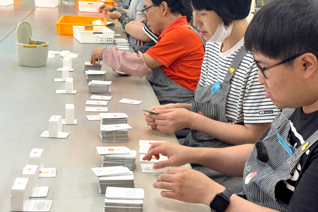 50장의 카드를 동일한 순서로 정렬해 쌓는 섬세한 작업이었지만, 청년 직원들은 시니어 선생님들의 도움을 받아 완벽하게 작업을 완료했습니다.