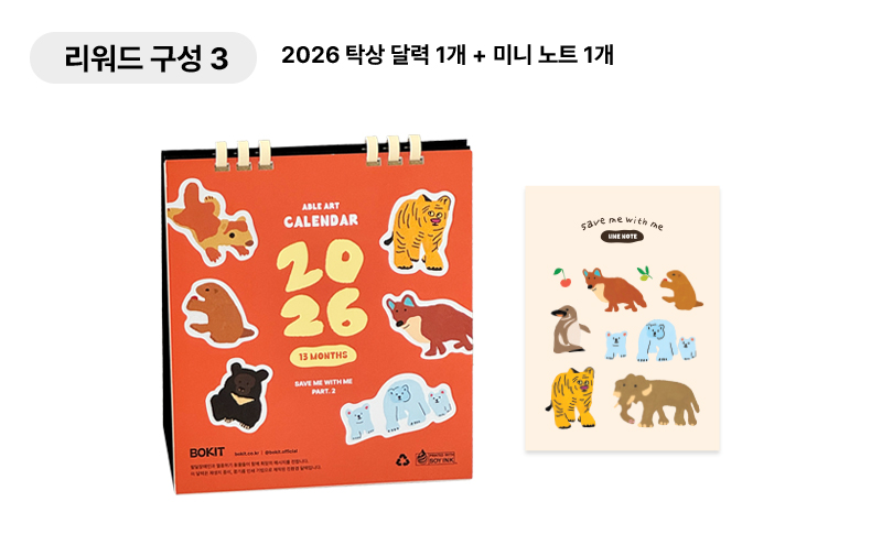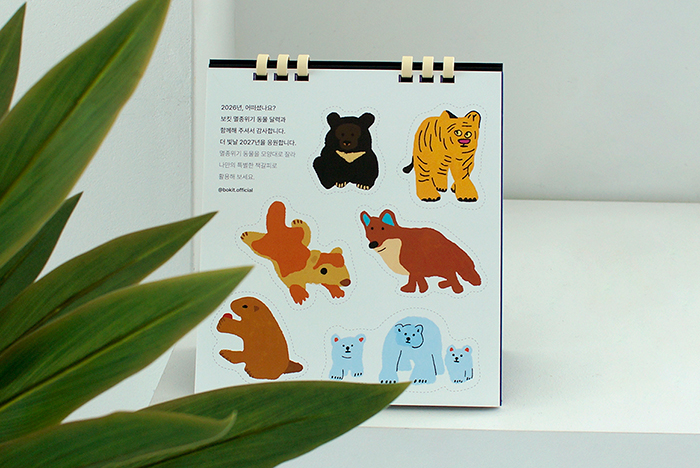 작년, 보킷은 ‘멸종위기 동물’ 달력 펀딩을 통해 사라져가는 생명들의 이야기를 전하며 많은 분들과 따뜻한 마음을 나눴습니다. 여러분의 응원 덕분에 그 작은 움직임은 생명과 공존의 의미를 되새기는 소중한 시간이 되었습니다. 올해 보킷은 그 이야기를 한층 넓히고 깊게 이어갑니다. 이번 프로젝트도 멸종위기 동물과 함께 따뜻한 메시지로 '우리 모두에게 희망'을 전합니다.🧡